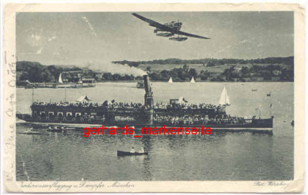 Starnbergersee, Junkers Wasserflugzeug F13 und Raddampfer München.