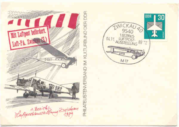 Bezirks - Luftpost - Ausstellung am 04.11.1989 in Zwickau.