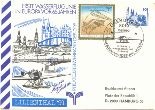Sonderstempel: 10.8.1990 8019 Dresden 19. Erste Wasserfluglinie in