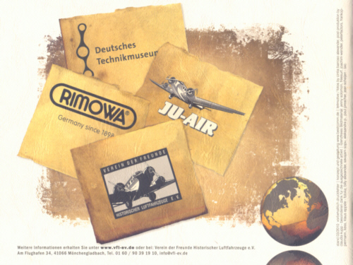 und Polycarbonat Koffern "RIMOWA", die Schweizer JU -AIR und das Deutsche Technikmuseum Berlin werden gemeinsam wieder eine Junkers F13 zum Leben erwecken. Die Maschine soll im September 2012 zum Erstflug starten. |