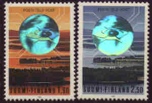 / 3D im Vordergrund das Logo der finnischen Post, im Hintergrund