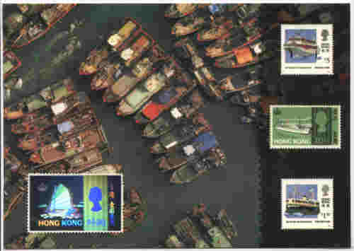 Wertzeichen $1.30 und eine Krone, im Hintergrund die Skyline von Hong