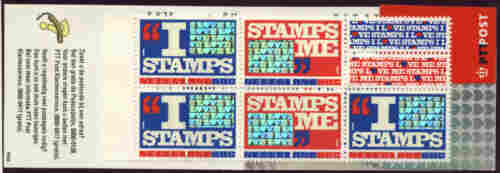 Bei der Marke "I LOVE STAMPS" wird das Wort "LOVE" nicht durch eine Text, sondern durch ein Hologramm mit Herzen gebildet. Bei