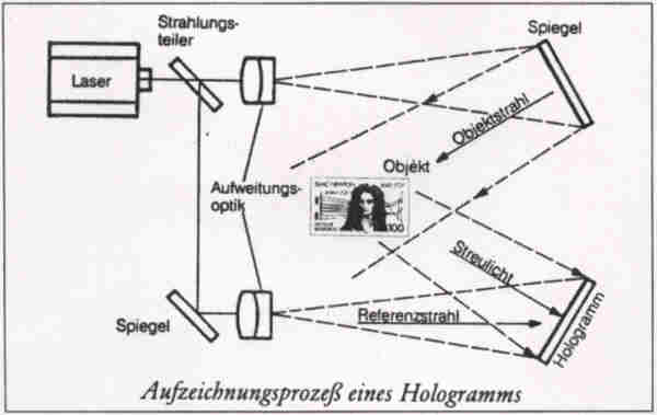 Hier überlagern sich beide Strahlen und zeichnen das für die Holografie