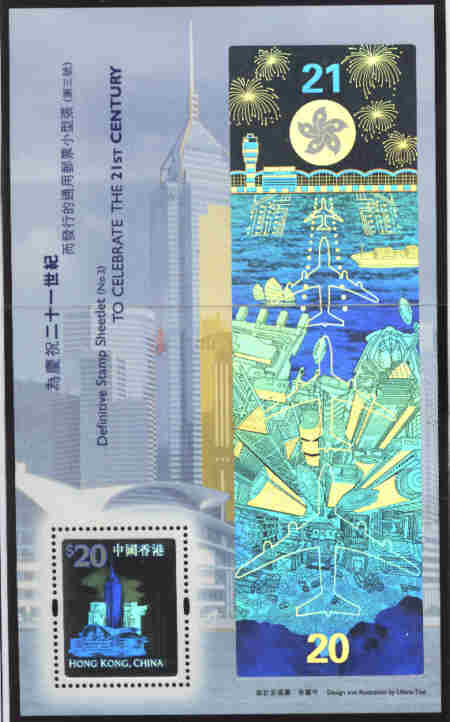 Schriftzeichen und Wert: $20 auf dem Block: Flugzeug überfliegt Hong Kong vom 20. ins 21. Jahrhundert |