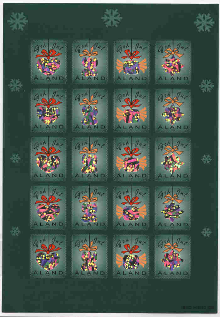 ein Bogen besteht aus 20 selbstklebenden Briefverschlussmarken. Die Weihnachtsmarken werden nur Bogenweise verkauft, (es handelt sich hierbei nicht um Briefmarken) |