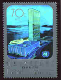 ist die erste holographische UNPA - Briefmarke. Sie zeigt die