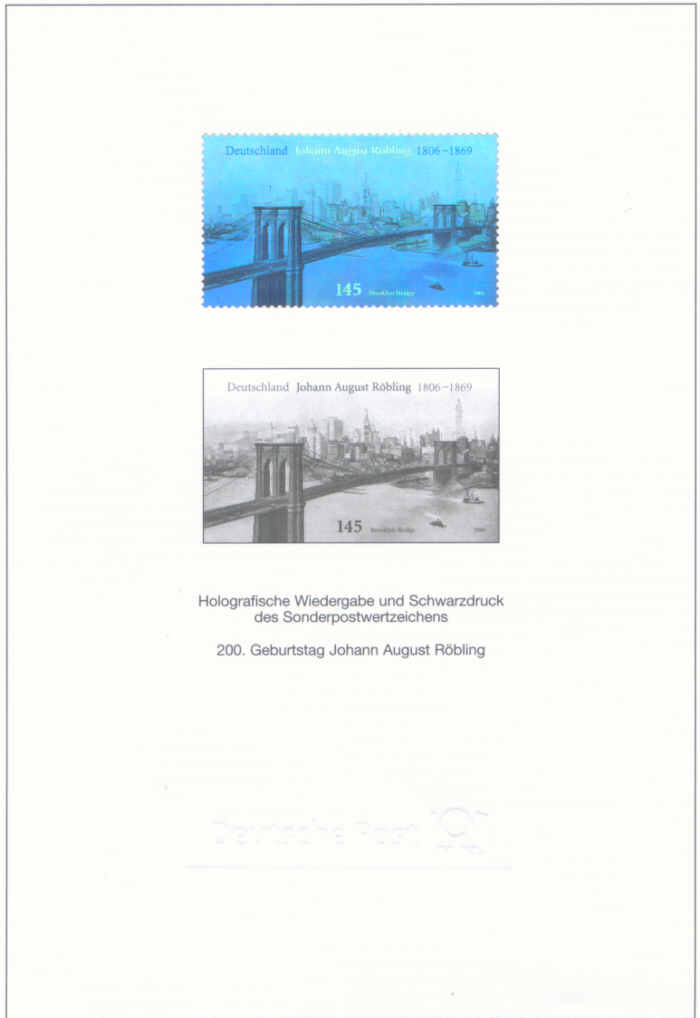 Holographische Wiedergabe und Schwarzdruck des Sonderpostwertzeichens.