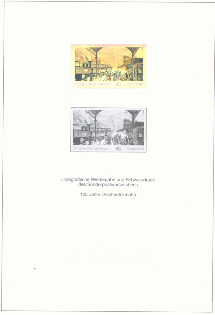 Holographische Wiedergabe und Schwarzdruck des Sonderpostwertzeichens.