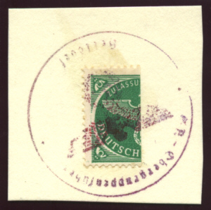 Halbierte Zulassungsmarke Mi Nr. 4 als Zulassungsmarke für Luftpost in Kurland verwendet. |
