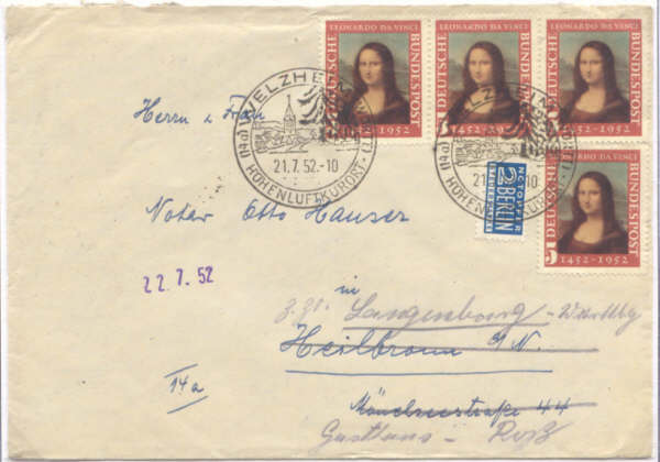 Anschriftenprüfung bis 30.06.1954 und als Ergänzungswert. 4 x 5 Pf. Briefe Inland bis 20g. vom 01.09.1948 bis zum 31.03.1964 |