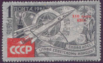 Parteitag der Kommunistischen Partei der Sowjetunion (KPdSU) mit rotem Aufdruck "XXII. Parteitag der KPdSU" |