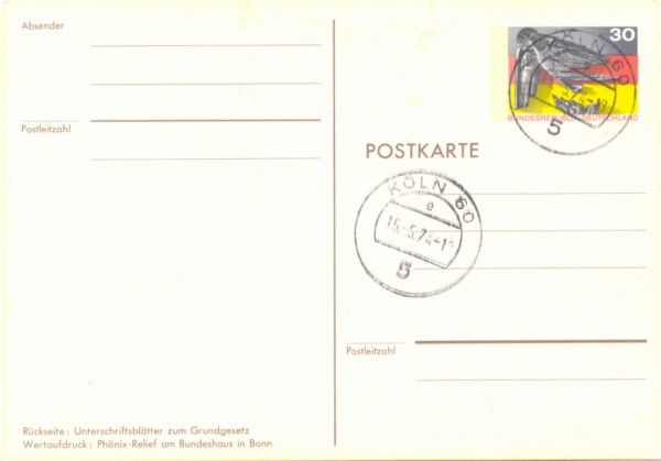 30 Pf für Postkarten bis 30.06.1974 und ohne Zusatzfrankatur