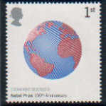 ![]() Das Intaglio-Druckverfahren wurde bereits für die ersten Briefmarken verwendet. Hierbei wird ein dicker Tintenfilm unter hohem Druck auf das Papier gebracht, so dass eine erhabene Oberfläche entsteht. Diese Marke nimmt sich den Nobelpreis für Wirtschaftwissenschaft zum Anlass und zeigt den Globus, dessen Kontinente in roter Tinte im Intaglio-Verfahren gedruckt wurden, während für die blauen Meere die übliche Lithographie zur Anwendung kam. |