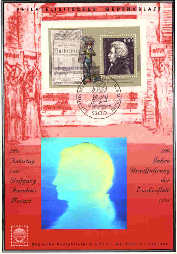 Mozart, im Hintergrund : Notenblatt |
