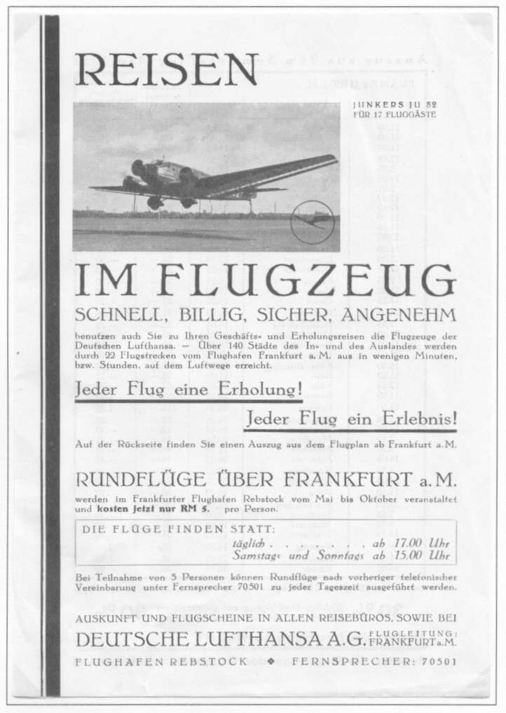 Werbung für "Reisen im Flugzeug" der Deutschen Lufthansa A.G. 934