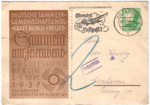 1937 Postkarten 6 Pf.(Nachgebühr 2 Pf.) 5 Pf
