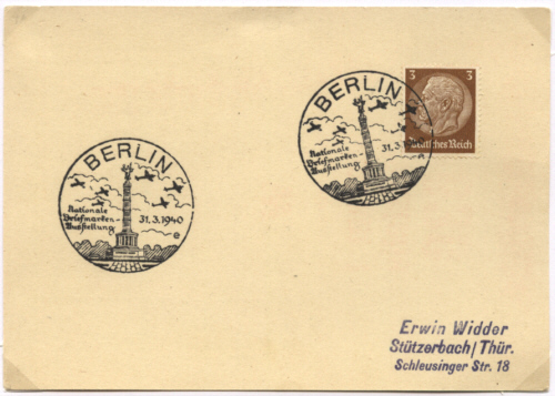 Sonderstempel zur Nationalen Briefmarkenausstellung in Berlin am 31.03.1940