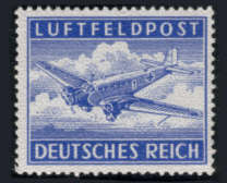 Die Zulassungsmarke M.Nr. 1 für Luftfeldpostbriefe und Karten wurde zur Einschränkung des Postaufkommens kontingentiert den Soldaten, deren Einheiten am Luftfeldpostdienst angeschlossen waren, an Frontabschnitten im Osten, auf dem Balkan und Skandinavien ausgegeben und war im Verkehr Front-Heimat bidirektional gültig. Die Soldaten erhielten von April 1942 bis April 1943 monatlich je vier Marken, ab Mai 1943 acht Marken zugeteilt. Zur Zulassung mußte eine Marke für jede Karte oder jeden Brief, ab Mai 1943 zwei Marken für jeden Brief verwendet werden. Die Hälfte der Zuteilung war für Sendungen Heimat-Front bestimmt. |
