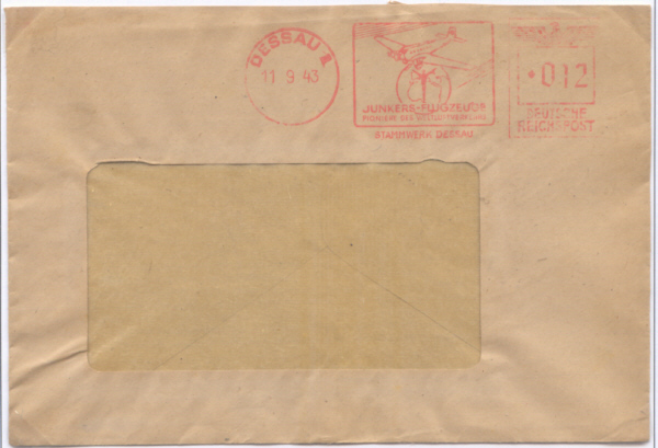 Junkers Stammwerk in Dessau. Dessau 1 11.9.43,