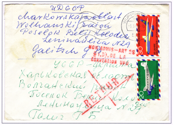 von Wuppertal in die Sowjetunion. Frankiert mit Michel Nr.576