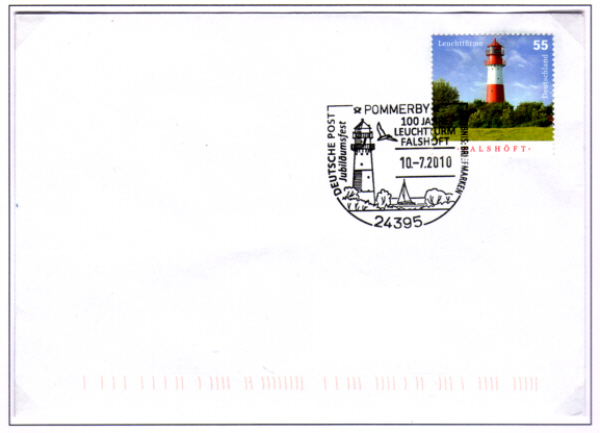 Sonderstempel: Pommerby 100 Jahre Leuchtturm "FALSHÖFT" am 10.07.2010