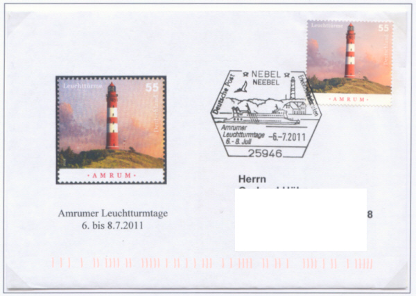 Sonderstempel: Amrumer Leuchtturmtage vom 06. bis 08.7.2011 gestempelt am 06.08.2011