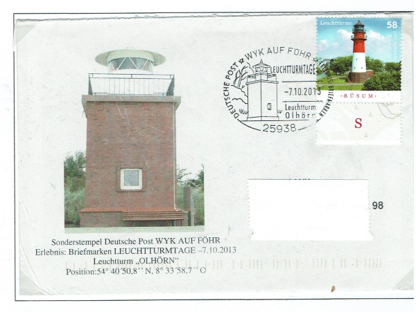!OLHÖRN“ frankiert mit 58 C Leuchtturm „ BÜSUM“ |