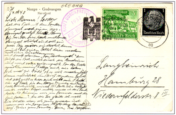Kreuzfahrtschiff in Dienst; 8791 BRT 284 Passagiere, 1935 an KdF verschartert ab 1939