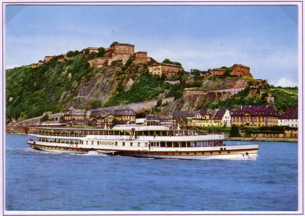 "RÜDESHEIM" in Höhe Koblenz am Rhein Festung Eherenbreitstein. |