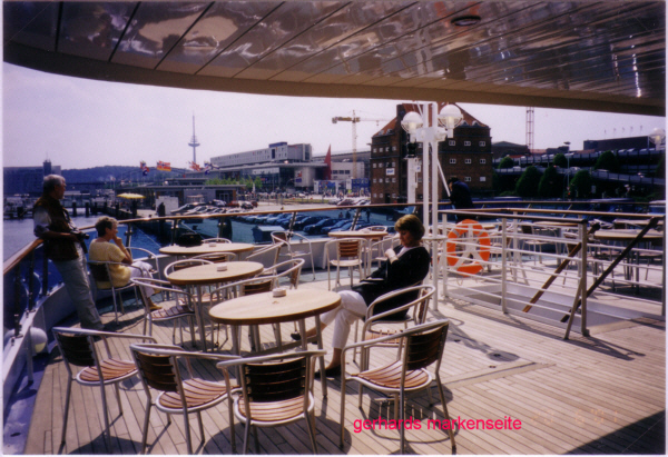 Die "FREYA" 2001 im Hafen von Kiel, im Salon und auf dem Achterdeck