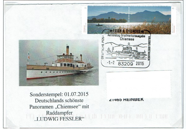 onderstempel: 01.07.2015 mit Raddampfer "LUDWIG FESSLER" auf dem Chiemsee