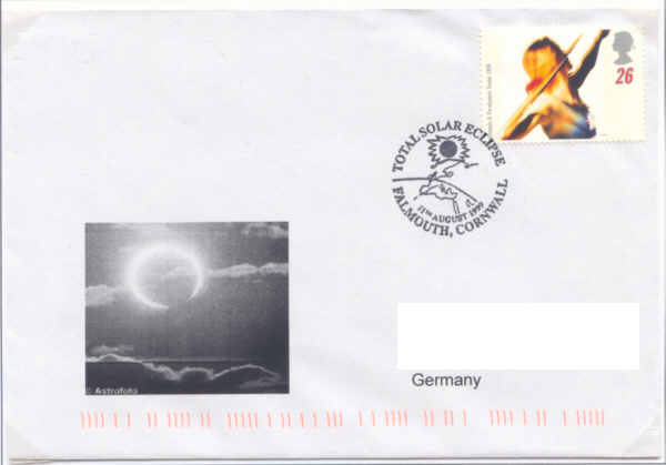 Sonderstempel: TOTAL SOLAR ECLIPSE, FALMOUNT CORNWALL 11AUGUST 1999