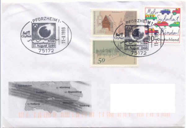Sonderstempel: Totale Sonnenfinsternis 11.08.1999 über Pforzheim