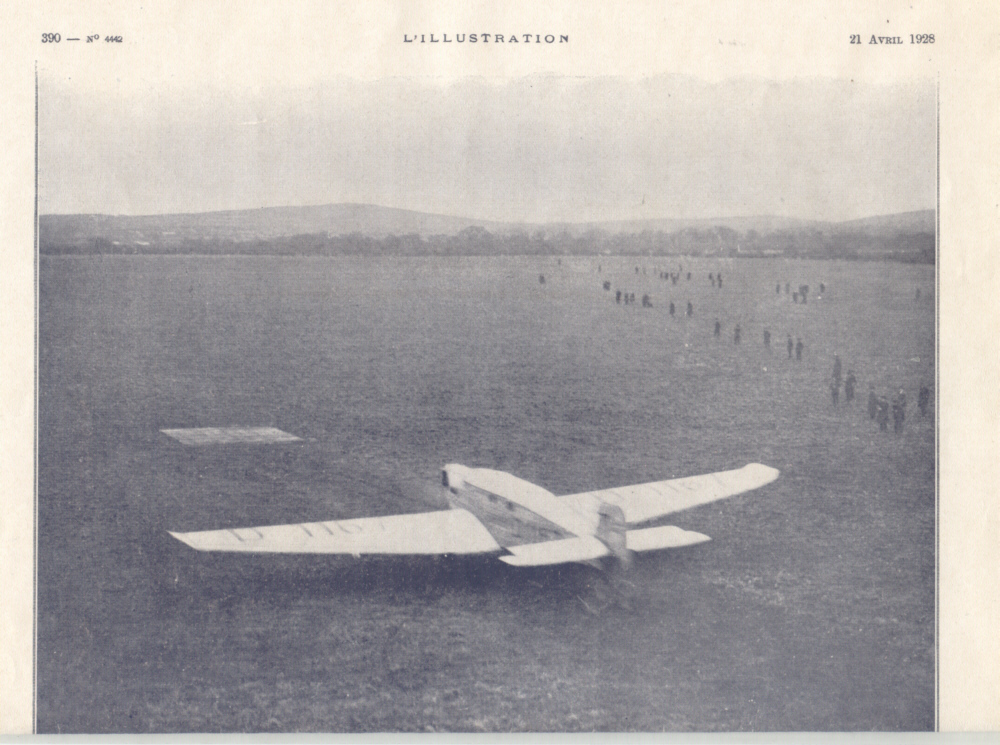 2 verkleinerte Abbildungen der Junkers W33 Kennung: D-1167 „Bremen“ aus einer französischen Zeitschrift nach dem 1. Ost – West -Nordatlantikflug vom 12./13.04.1928.